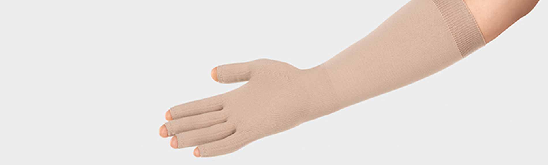 Jetzt gibt es neben der kurzen Ausführung (HFA) der Juzo ScarPrime Seamless Handschuhe auch eine lange Ausführung (HFD) mit Unterarmstulpe. Beide Ausführungen sind in vier Seriengrößen von S (2) bis XL (5) und den Farbvarianten Schwarz und Beige erhältlich. Die seriengefertigten Handschuhe sind schnell verfügbar und damit ideal für die direkte medizinische Versorgung geeignet.